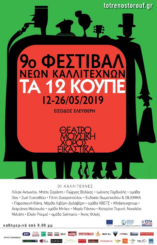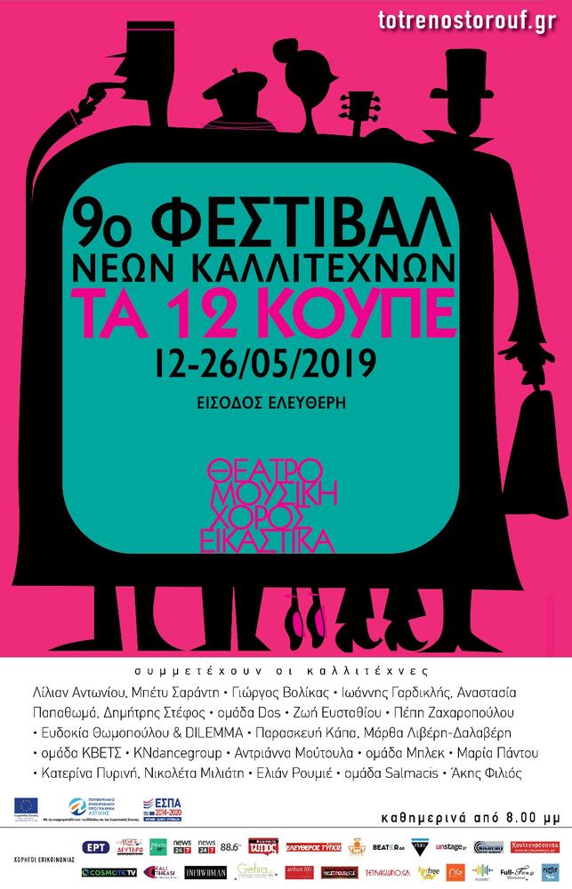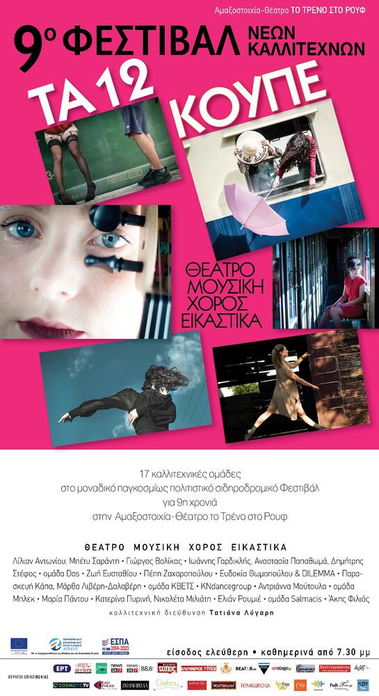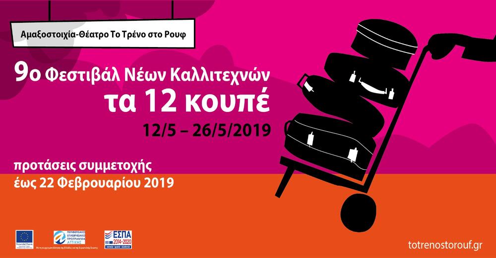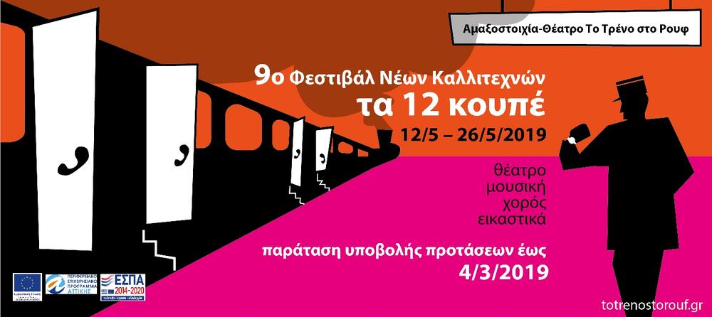 Για 9η χρονιά, η Αμαξοστοιχία - Θέατρο το Τρένο στο Ρουφ κινείται στους ρυθμούς των 17 ομάδων του 9ου Φεστιβάλ Νέων Καλλιτεχνών «τα 12 Κουπέ», καθημερινά, από την Κυριακή 12 έως και την Κυριακή 26 Μαΐου 2019.
