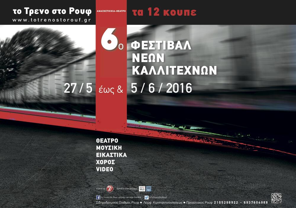 Το επιτυχημένο και μοναδικό στον κόσμο πολιτιστικό σιδηροδρομικό Φεστιβάλ Νέων Καλλιτεχνών «Τα 12 Κουπέ», που εμπνεύστηκε και καθιέρωσε η Τατιάνα Λύγαρη, με στόχο την προώθηση των νεανικών καλλιτεχνικών δυνάμεων του τόπου, ανοίγει τις πόρτες του για 6 συνεχή χρονιά, από την Παρασκευή 27 Μαΐουέως τις 5 Ιουνίου 2016 στην Αμαξοστοιχία-Θέατρο το Τρένο στο Ρουφ.